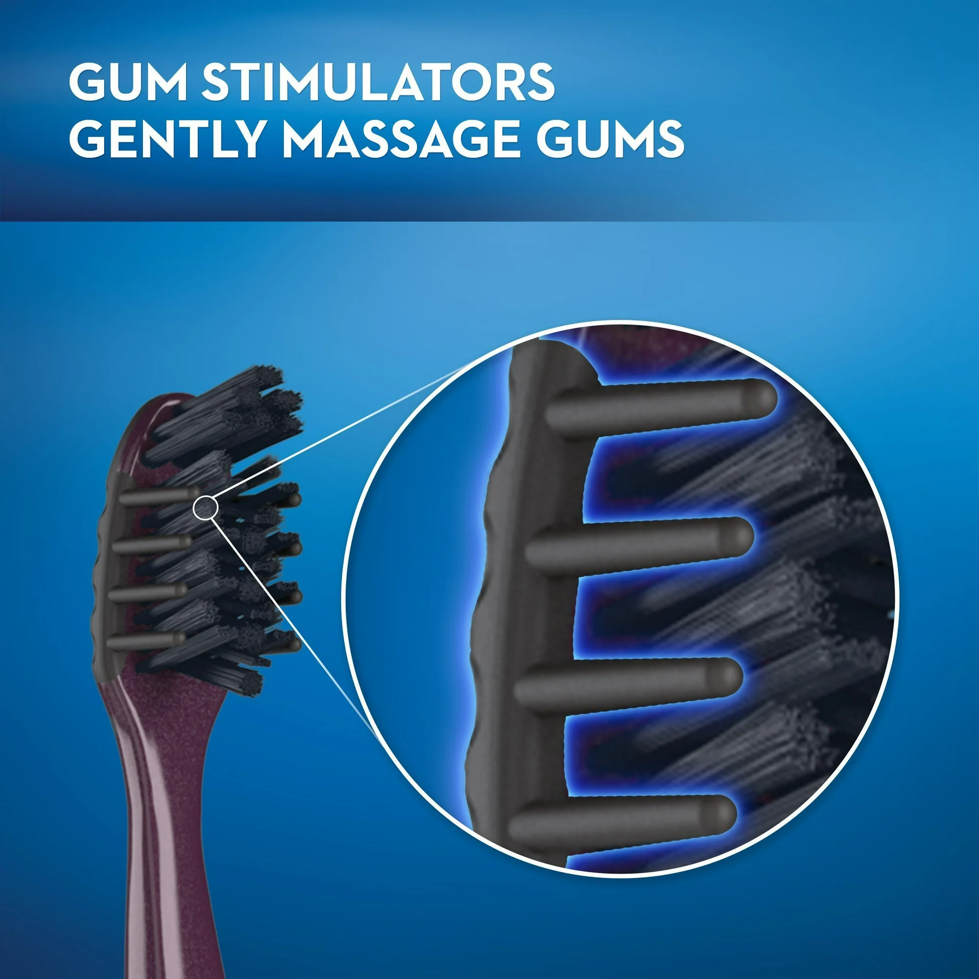 - Outer angled bristles gently massage your gums and help clean along the gum line